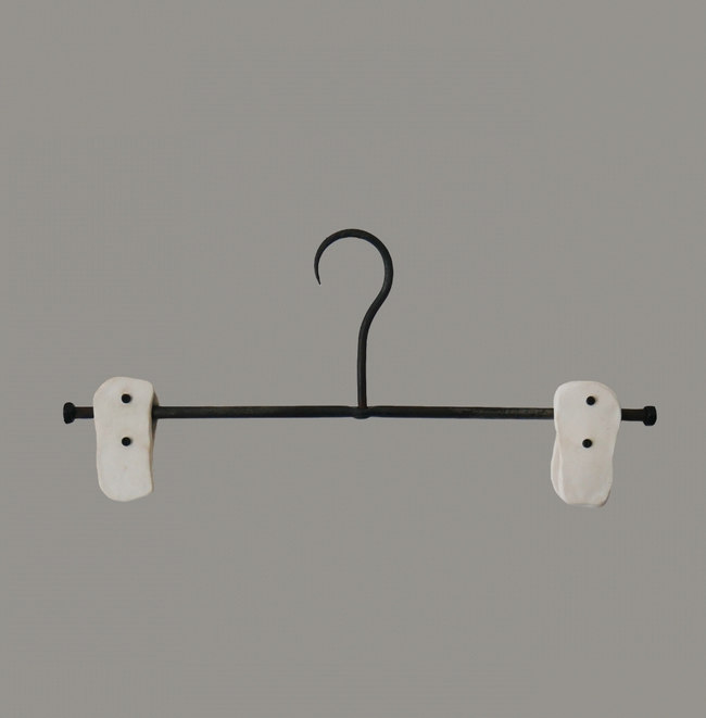 Iron and porcelain 'bones' clothes hanger for trousers, skirts, shorts. 450 g.